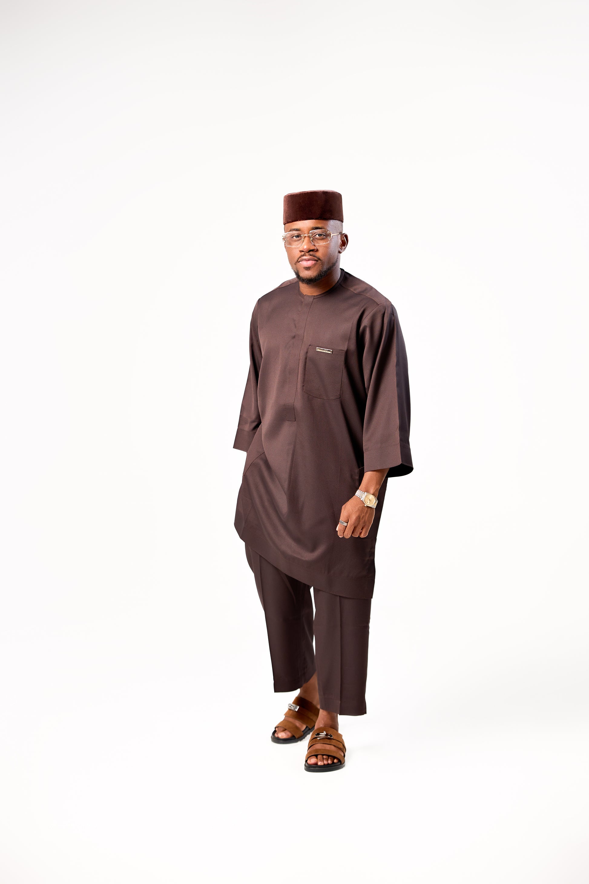 The Cocoa Kaftan Set is designed for the modern gentleman who values sophistication, cultural pride, and effortless style. Crafted in a rich cocoa brown tone, this two-piece ensemble blends traditional African tailoring with a refined contemporary finish.